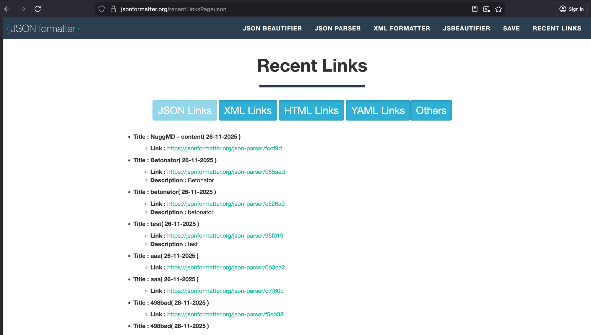 JSONFormatter kullanan kullanıcılar, verileri istediği hale getirdikten sonra platformun kaydetme özelliğini kullanıyorlar. Bu özellik ile birlikte, platform tarafından sağlanan bir bağlantı ile biçimlendirmiş olduğu kod yada kod parçacıklarını başka birileriyle paylaşabiliyorlar. Gerçekleştirilen araştırmadan anlaşılacağı gibi bu özellik, platform sahibi yada sahiplerinin istediği gibi gitmediğini açık bir şekilde gösteriyor.